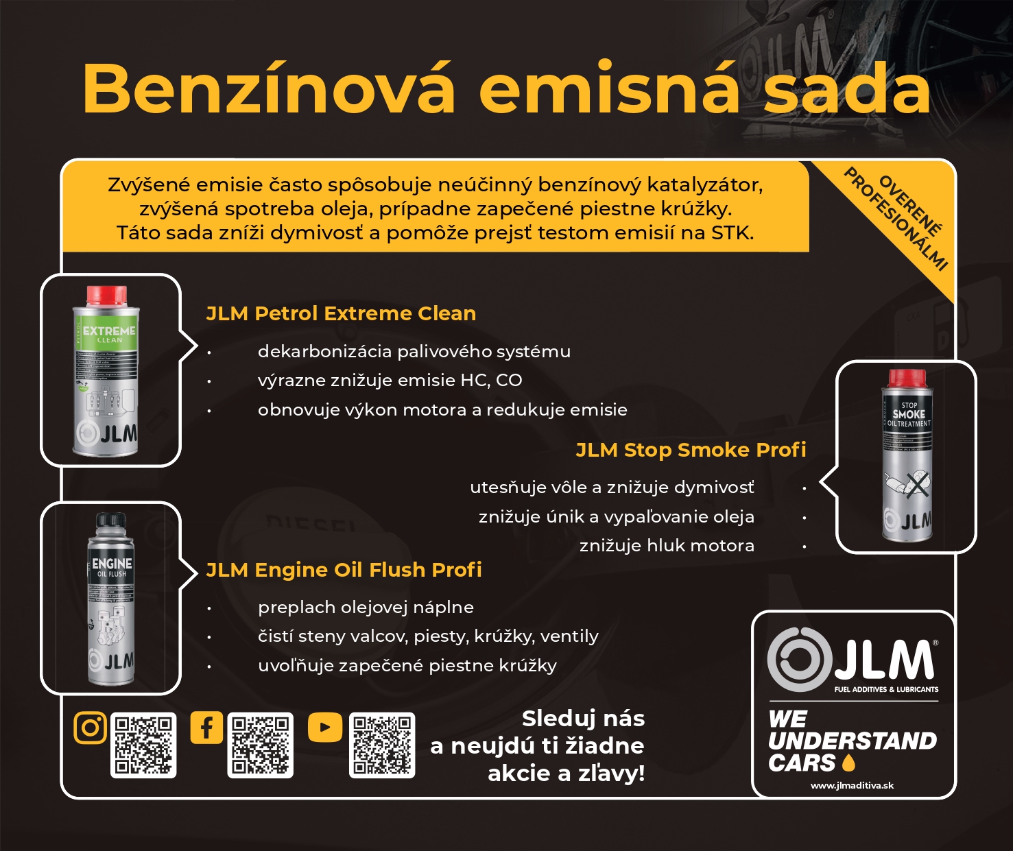1.) Preto pred testom emisíí doporučujeme vymeniť olej s preplachom JLM Engine Oil Flush. Tento produkt dokáže uvoľniť zapečené piestne krúžky a odstrániť nečistoty a kaly v olejových kanáloch.
